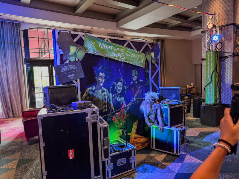 The Thirsty Fish has been transformed into a ghostly fishing vessel frozen in time. Icy nets, a shattered mast, and a chilling blue glow set the stage for a hauntingly immersive experience. An eerie blue glow is cast along the walls, sending shivers down your spine. Hours: 5pm – midnight daily - Hard Rock Hotel – Night of the Living Shred