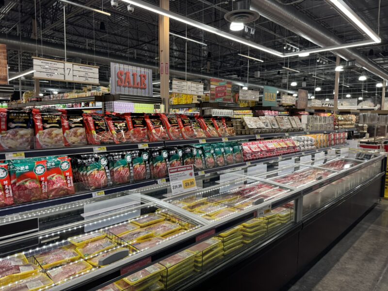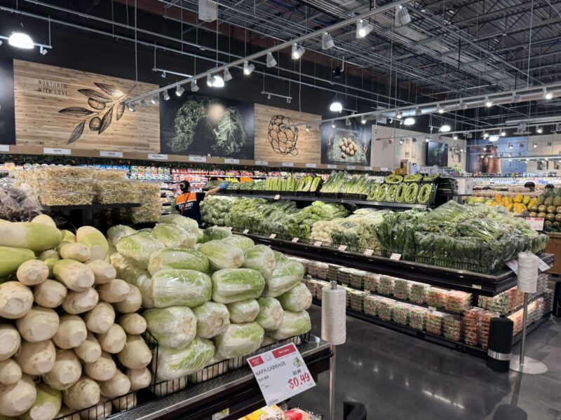 They offer a diverse selection of fresh produce, premium meats, live seafood, and also have a gatcha claw machine arcade, Korean beauty supply store, salon, and more.