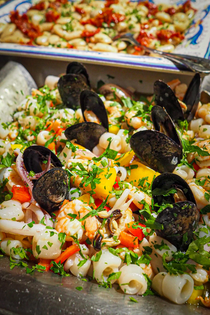 Must tries at Enzo’s include: Spaghetti alla Carbonara features sautéed onions, bacon, farm-fresh egg yolk, black pepper and Romano cheese, Bucatini alla Enzo (hollow pasta with prosciutto, peas, bacon, mushrooms and Parmigiano-Reggiano) and Fettuccine ai Aragosta e Gamberi (homemade fettuccine with Maine lobster and large shrimp in saffron-green onion sauce).