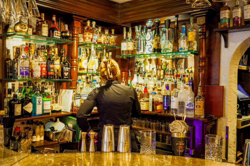 The wine list is also extensive, including noteworthy Italian selections such as Chianti Classico Riserva and Super Tuscans, demonstrating that the bar supports serious wine drinking as well.