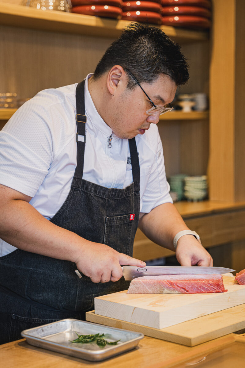 Guided by the traditional Japanese dining style kappo — which translates literally to “to cut and to cook” — the concept emphasizes the proximity between diner and chef. Designed by Jacob Portillo, the space was intentionally laid out so that diners can see clearly into the open kitchen from any seat within the restaurant, reinforcing transparency, craftsmanship, and the performance of cooking as part of the experience.